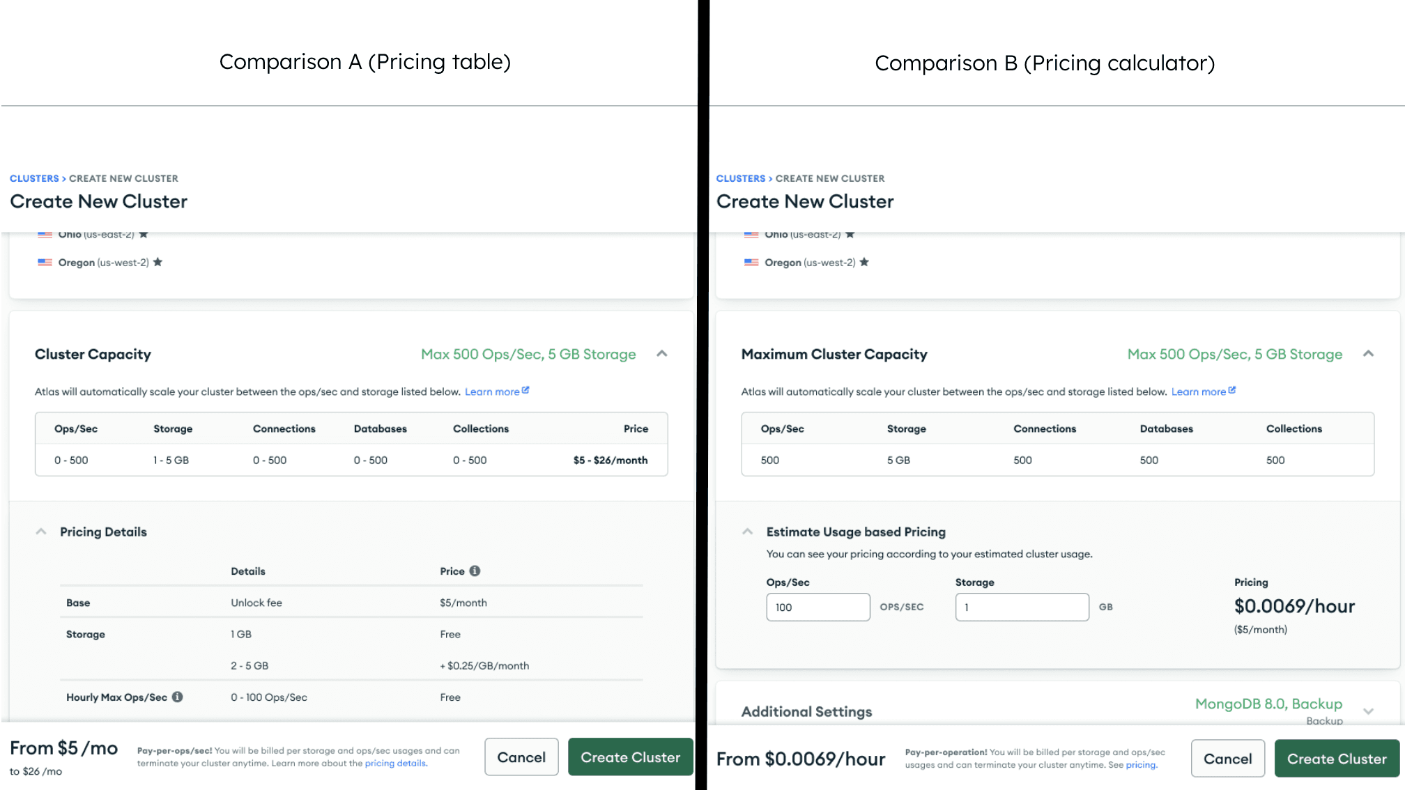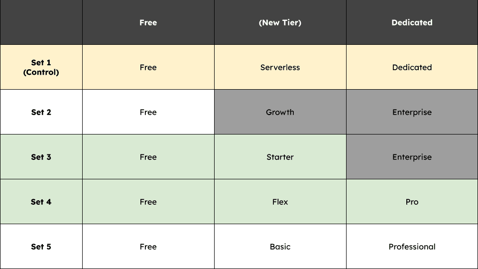 With the Flex Cluster tier name, pricing and value proposition aligned on from internal iteration, a painted door experiment was conducted leading to statistically significant results.