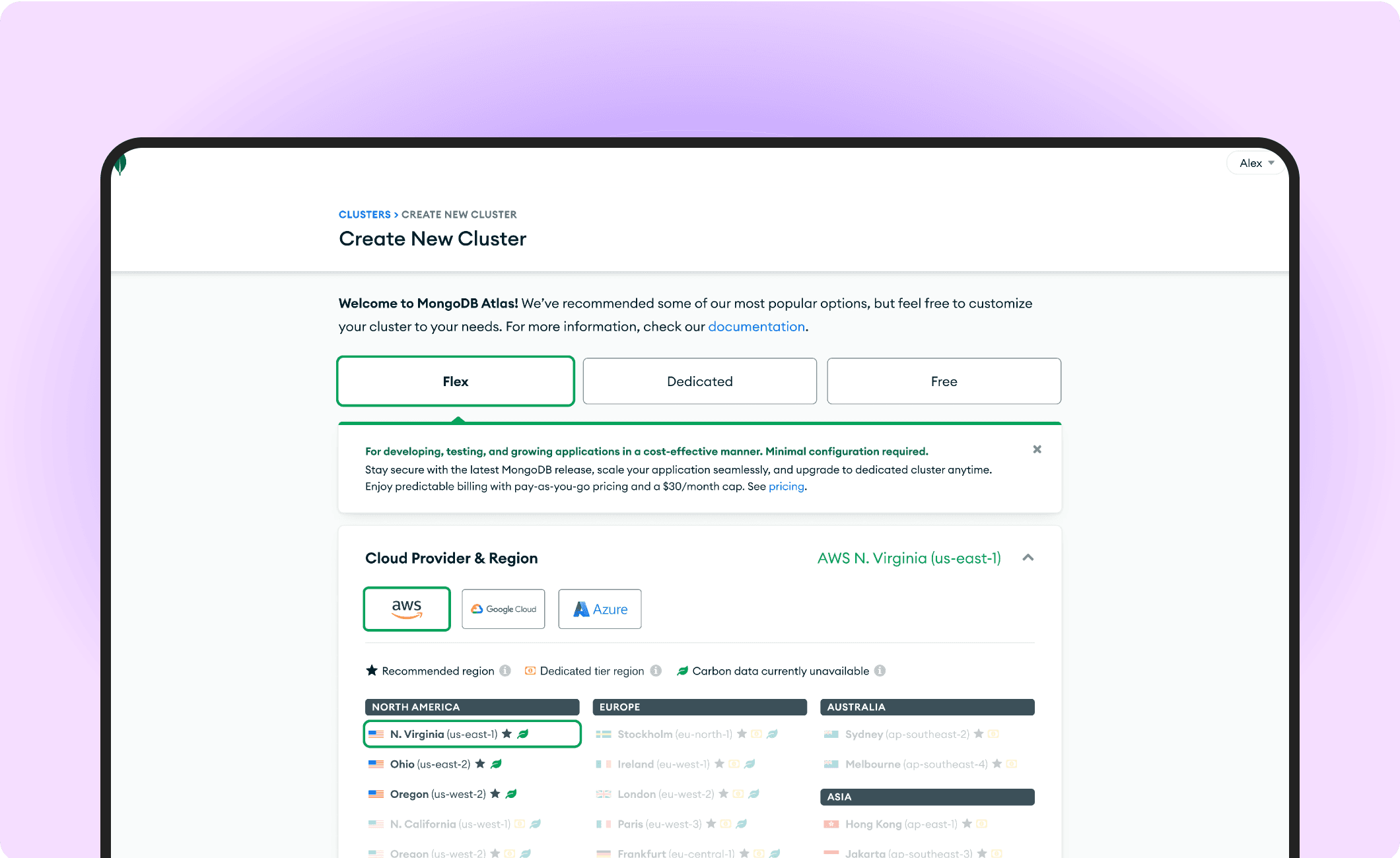 Clearly defined the flex cluster tier's value proposition as a middle ground offering that provides users with more capabilities compared to the free tier but has less cost associations compared to its dedicated counterpart.