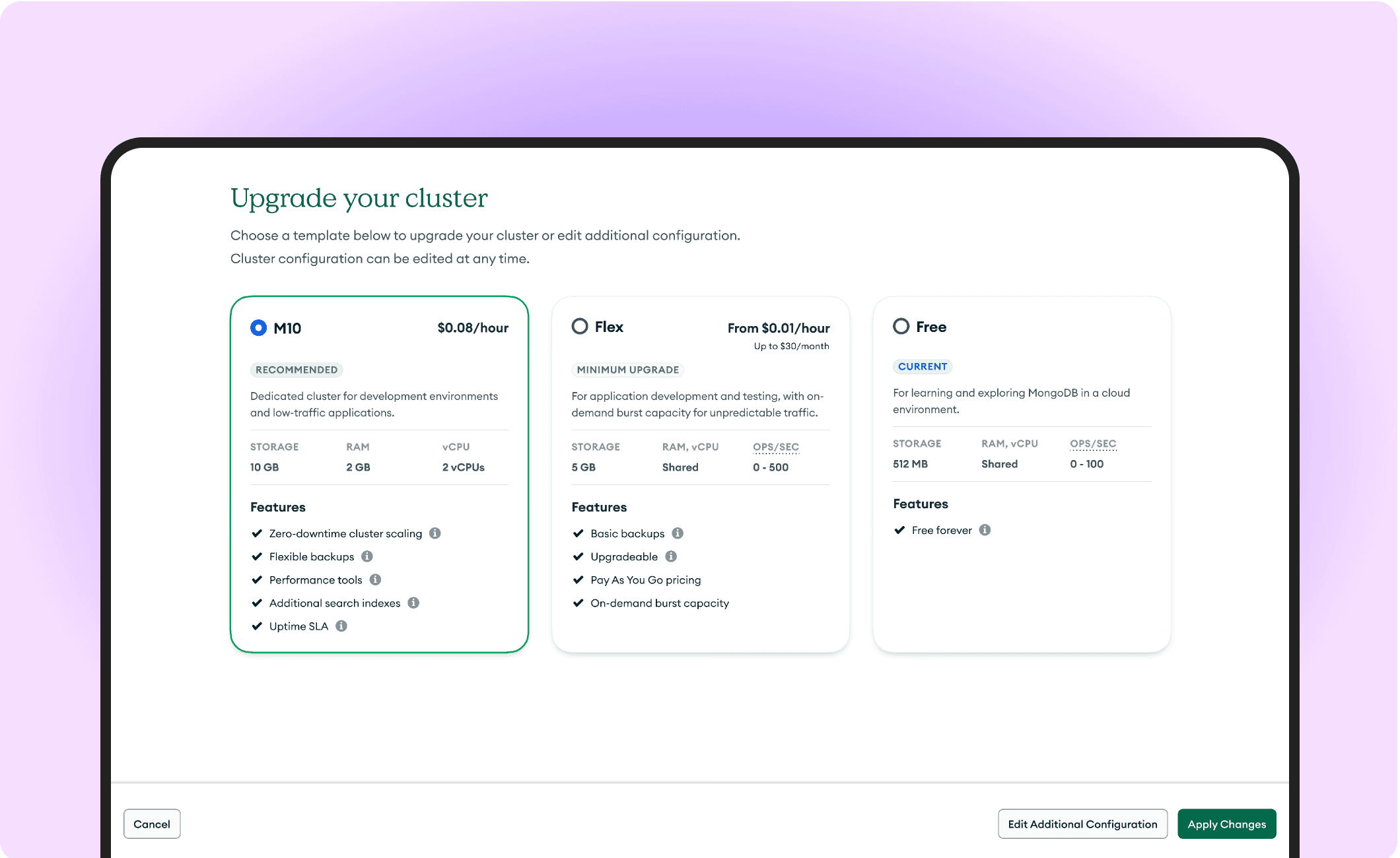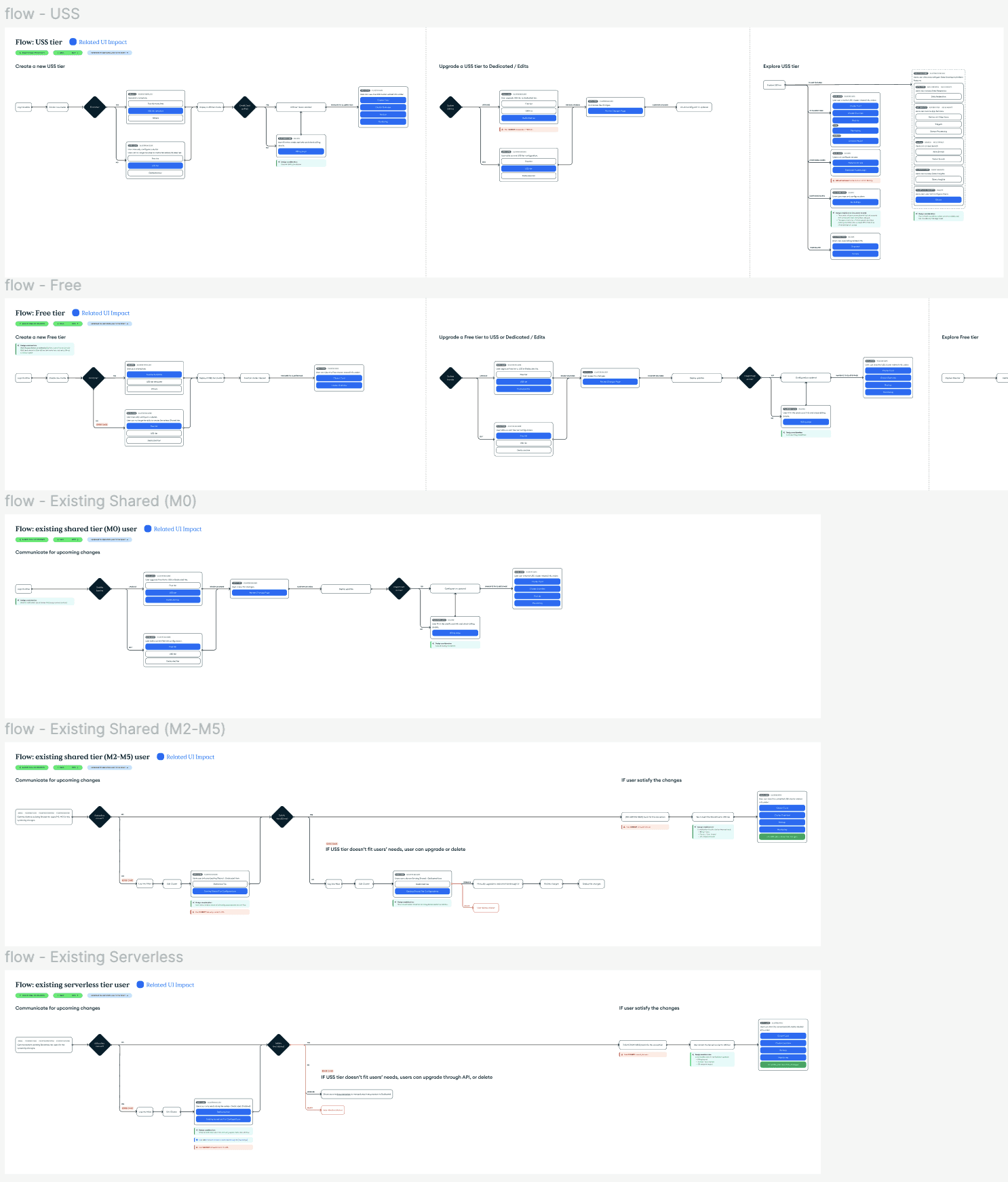 Mapped out and provided messaging/CTAs to ensure existing users could automatically upgrade shared clusters or serverless clusters to the new Flex tier offering. Included support for upgrades to dedicated clusters for further paid conversions.