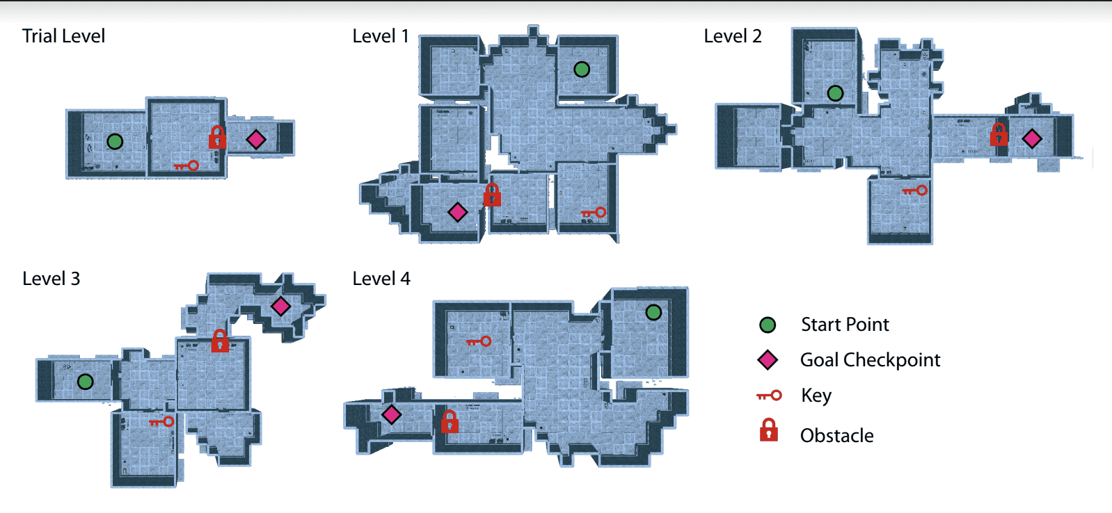 Beyond video games, we also see similar studies within the physical world to evaluate navigation tools built for blind and low vision users within physical world environments.