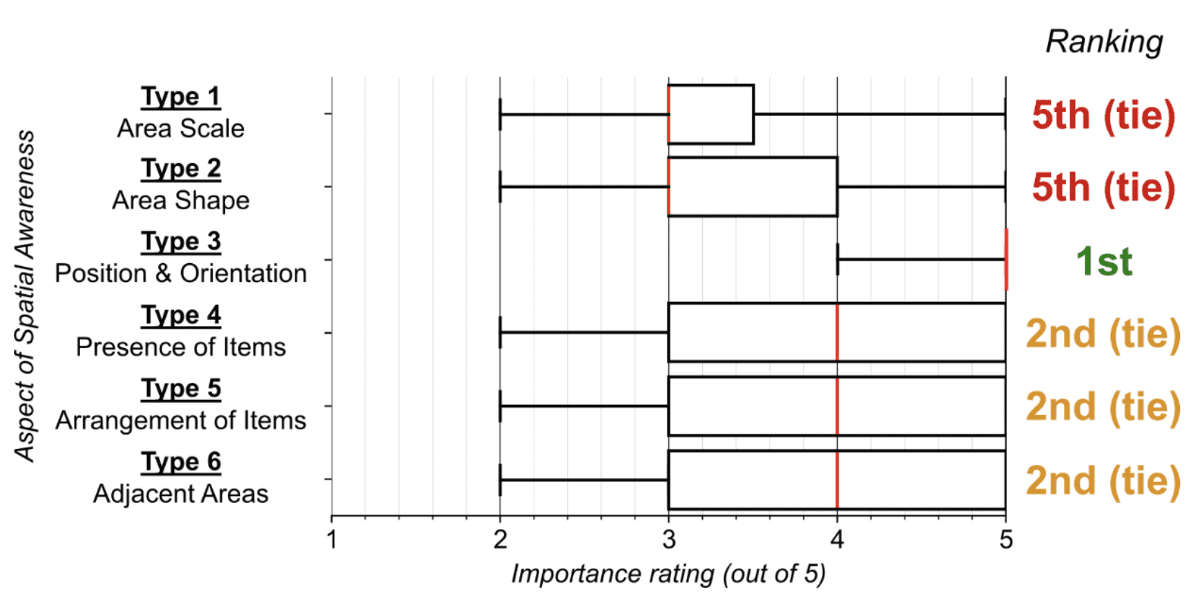 Item presence, item arrangement, and adjacent areas awareness: There was a 3-way tie between these types which participants thought could help, but could also be too much information at times.
